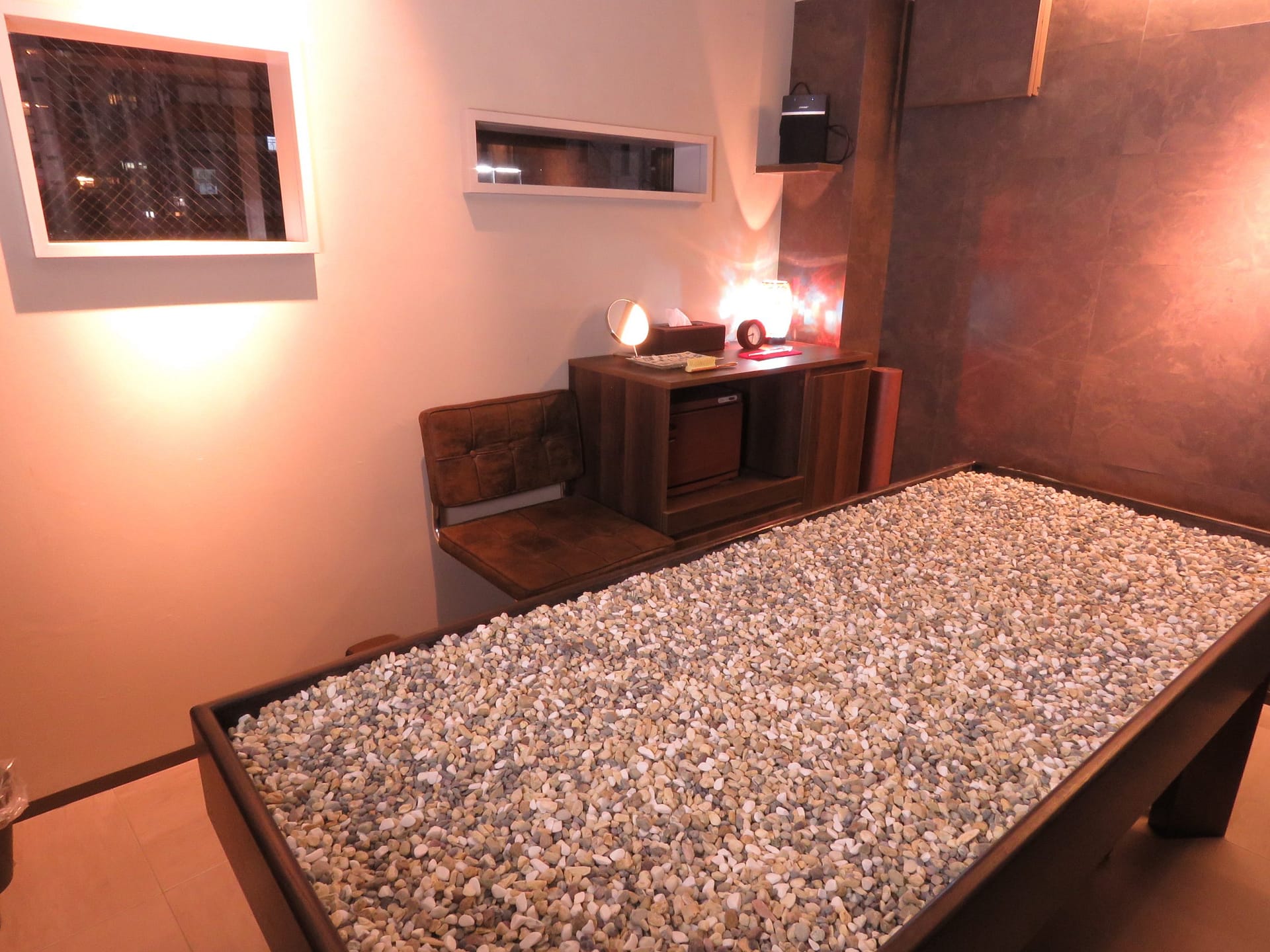 A: 身体のツボを温かい石が刺激するのでとても心地よく体感いただけます。