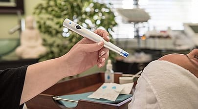 幹細胞培養液をお肌にダイレクトに注入!!オセアンでは世界初、日本初の生きた生の幹細胞培養液を使用、肌に細かな穴を開け幹細胞培養液を導入します。